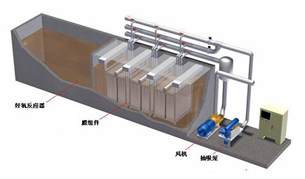 膜-生物反應(yīng)器(Membrane Bio-Reactor,MBR)為膜分離技術(shù)與生物處理技術(shù)有機結(jié)合之新型態(tài)廢水處理系統(tǒng)。MBR以組件取代傳統(tǒng)生物處理技術(shù)末端二沉池,在生物反應(yīng)器中保持高活性污泥濃度,提高生物處理有機負荷,從而減少污水處理設(shè)施占地面積,并通過保持低污泥負荷減少剩余污泥量。